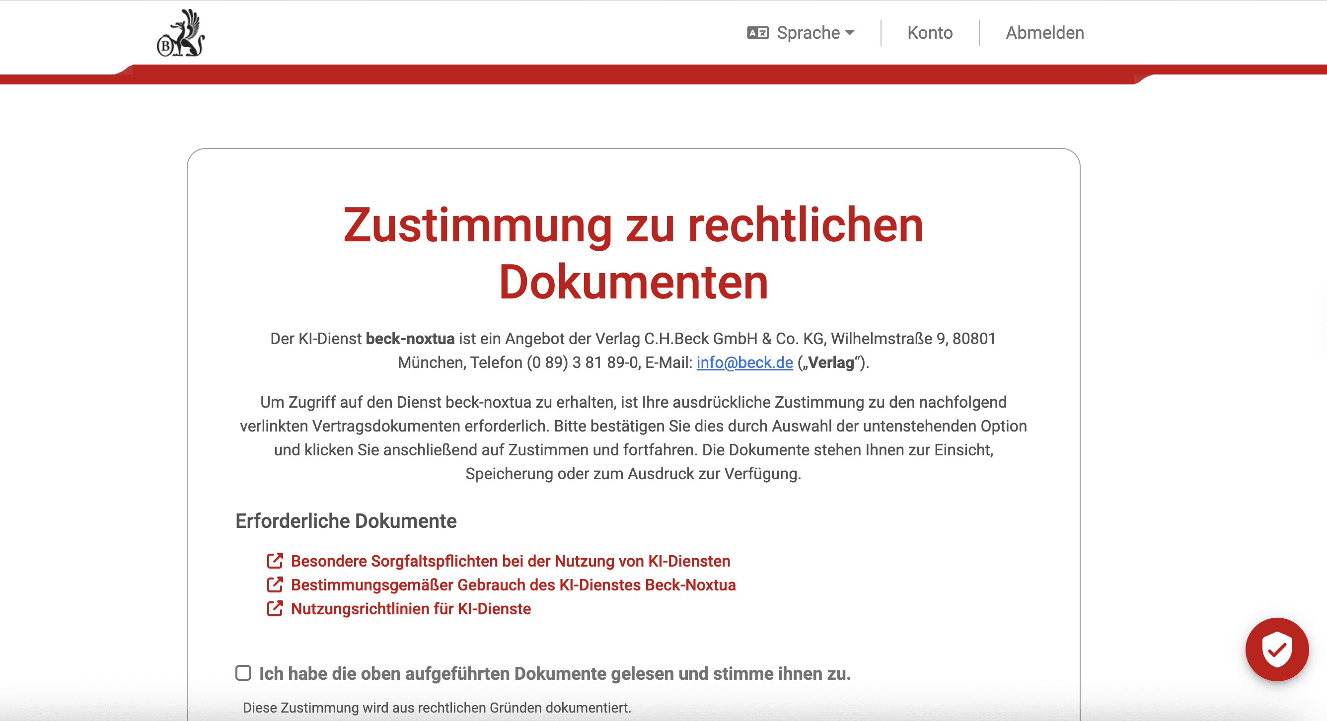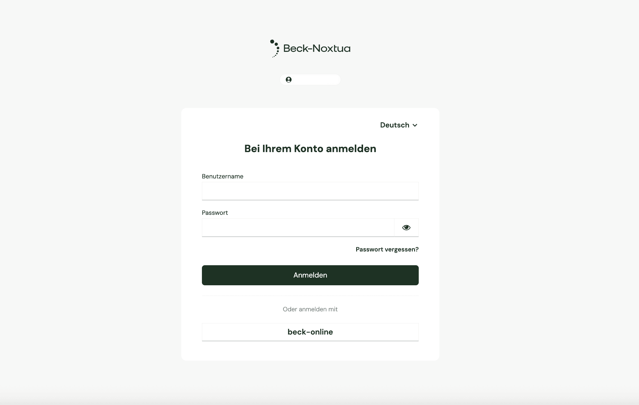 Nach erfolgreichem Login werden Sie automatisch in Ihren Beck-Noxtua Bereich weitergeleitet. Ein separates Beck-Noxtua-Konto muss nicht manuell angelegt werden.