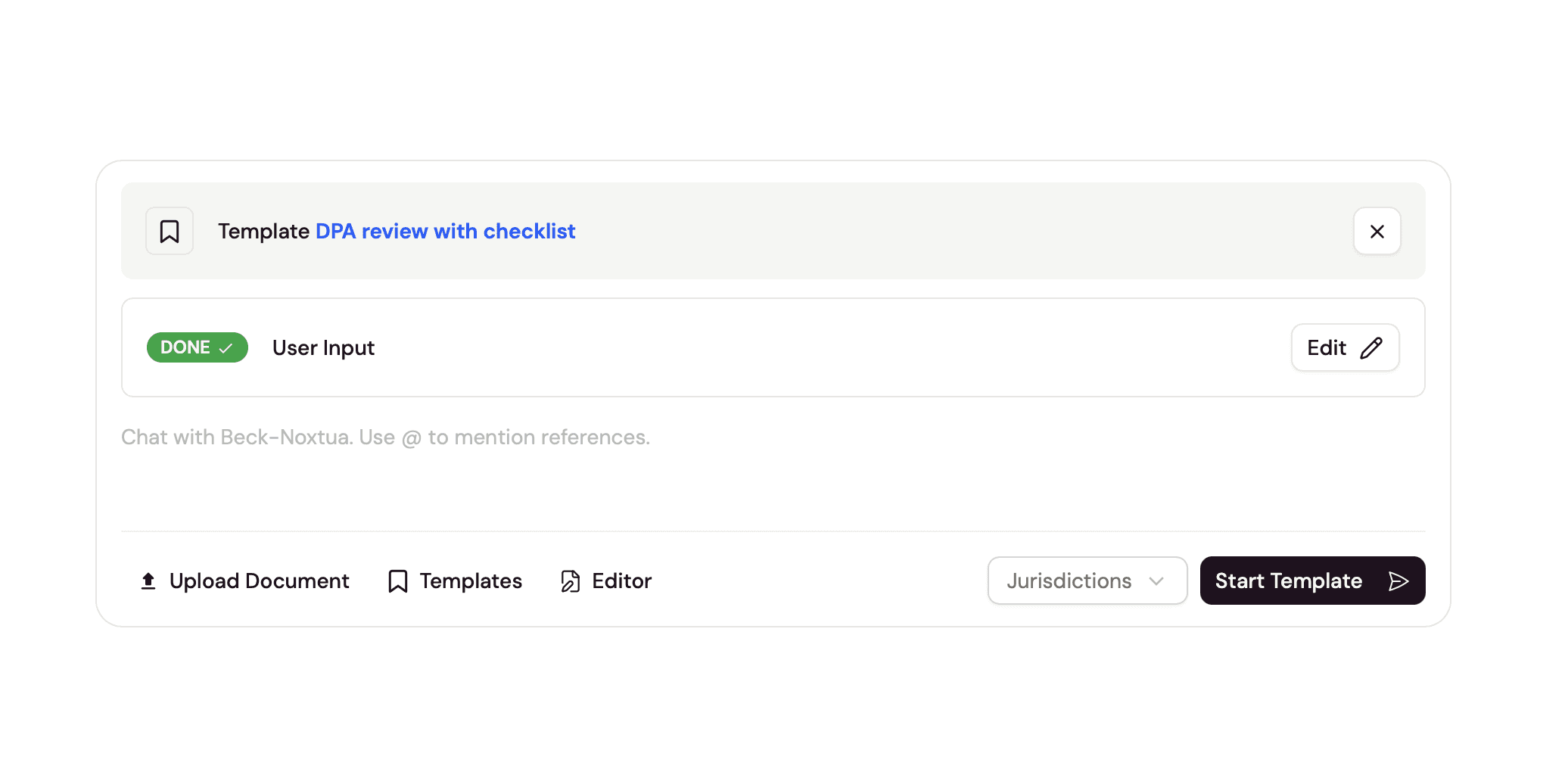 If you want to add any further information relevant to the task, you can enter it as usual in the chat window. Then click "Start Template" and Noxtua will begin processing your task.