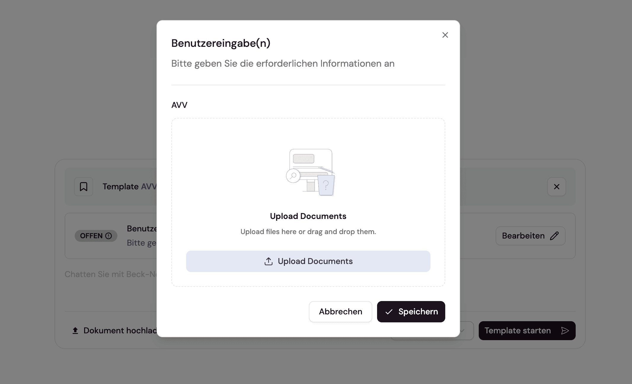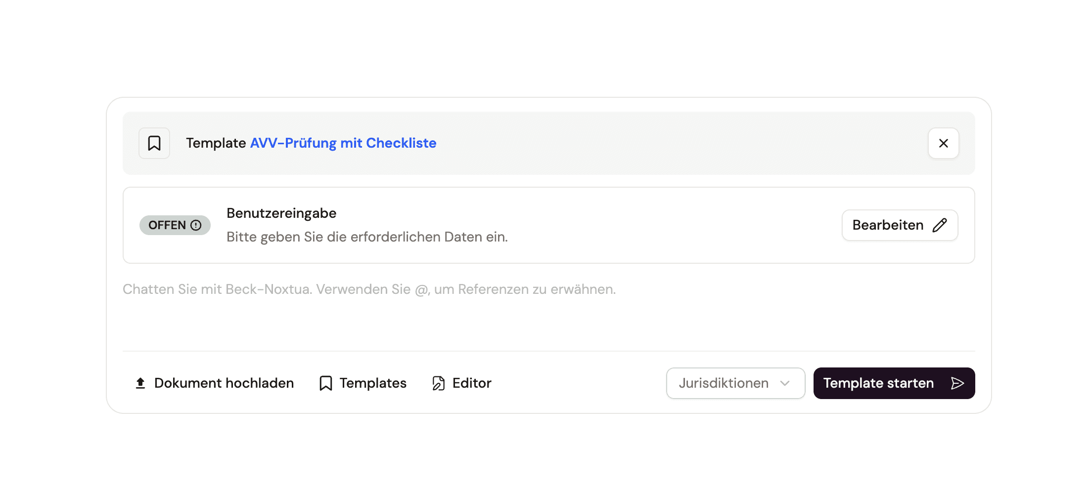 Mit einem Klick auf die Schaltfläche “Template starten” startet Noxtua mit der Bearbeitung Ihrer Aufgabe.