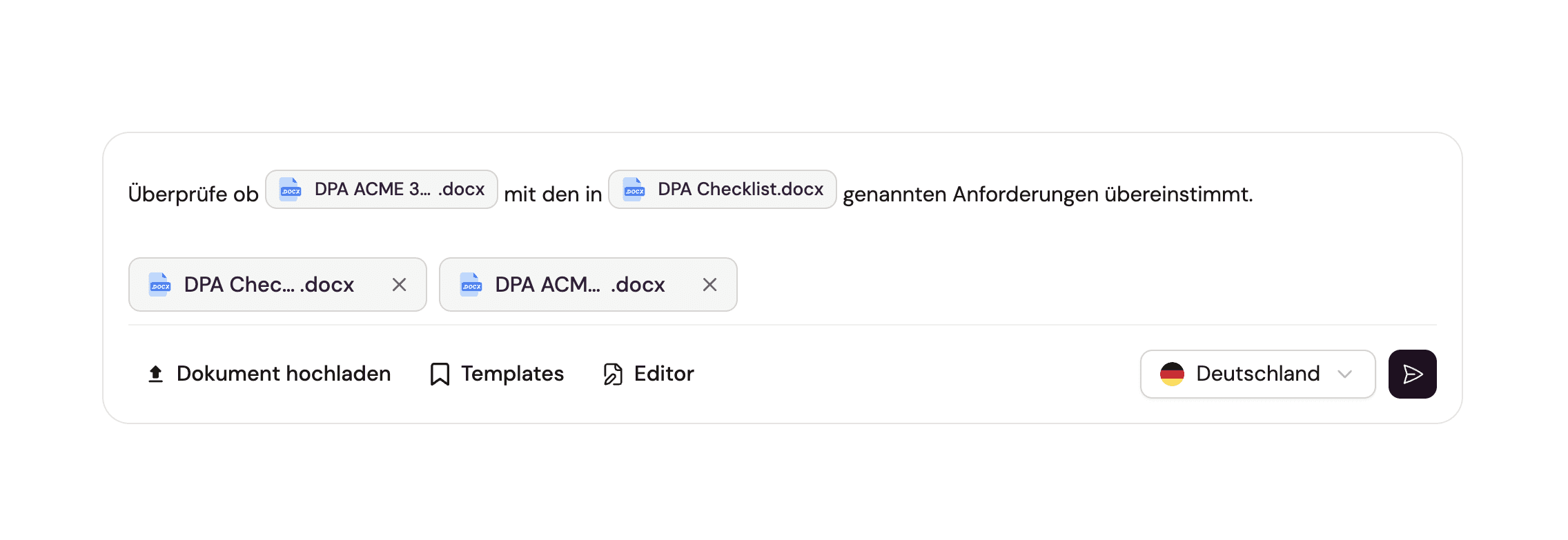 Wenn Sie mehrere Dokumente für eine Aufgabe hochladen, ist es für die KI nicht immer ersichtlich, auf welche Datei sich eine Frage oder ein Auftrag bezieht. Dabei kann es zu ungenauen Antworten und unnötigen Iterationen kommen.