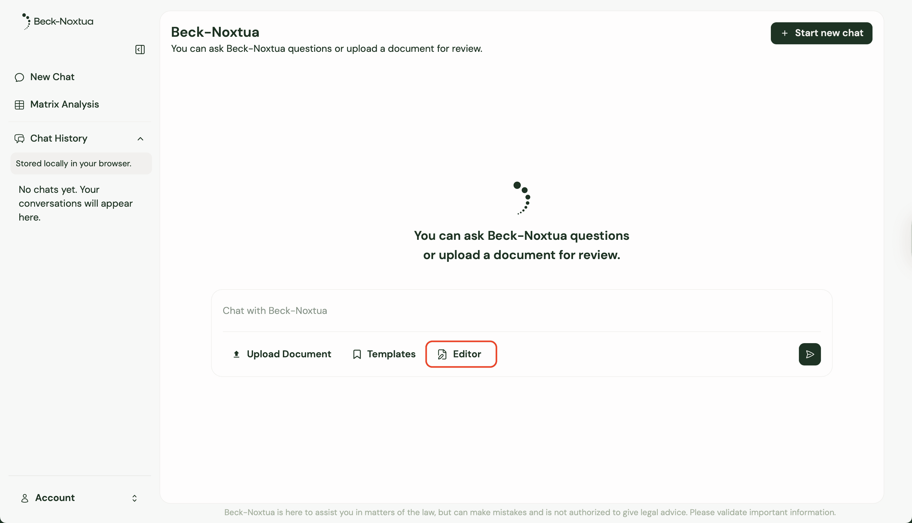 The Editor is a workspace in Beck-Noxtua that enables you to draft and edit legal documents quickly. In its first version, it is particularly helpful if you want to explore initial ideas, organise unstructured information, or create new documents based on reference materials. Beck-Noxtua provides you with a first draft that you can edit manually or with AI assistance and refine through additional research. All text changes are transparently documented so you maintain full control over your document at all times.