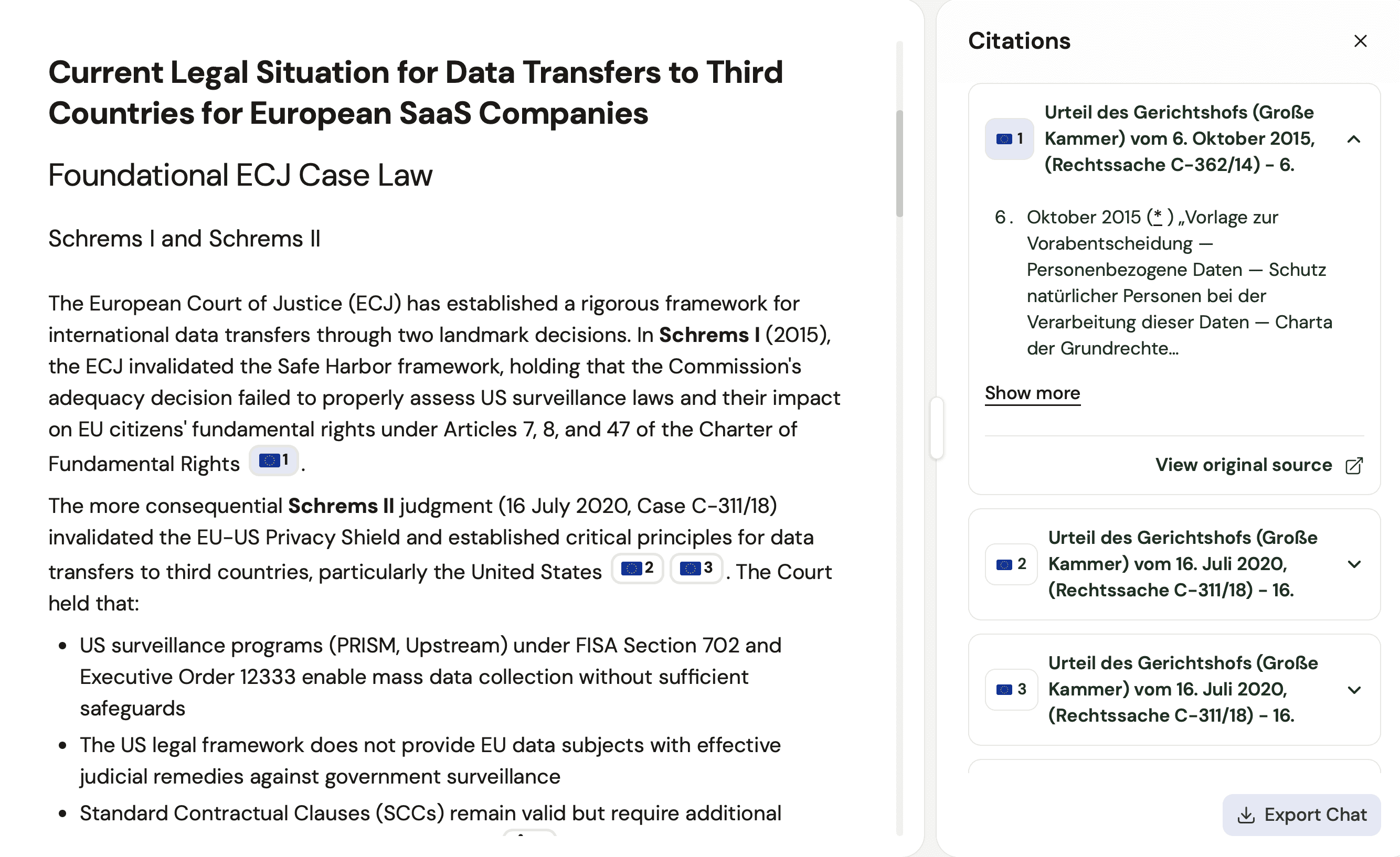On top of the exclusive legal publisher data you already work with, Noxtua now integrates EU data directly from EUR-Lex, the official EU law database. Whenever your query touches EU law, Noxtua will automatically draw on the relevant EU data and cite specific sources.